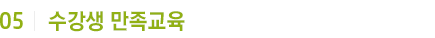 수강생이 협회 교육을 1에서 10까지 평가한다면 10을 받을 수 있는 교육으로 수강생이 만족 할 수 있도록 수업의 질과 깊이가 있는 교육을 진행하고 있습니다. 전임강사를 통한 밀착형 담당 지도로 수강생이 만족 할 수 있는 교육을 진행하고 수강생들의 요구사항을 꼼꼼하게 체크하여 수강생이 100% 만족할 수 있는 시스템을 갖추었습니다. 또한, 체계적인 조직 관리를 통해 업무를 분할하여 수강생들의 지도부터 접수, 취업, 창업까지 지원하며 수강생 만족을 위한 시스템으로 협회는 운영하고 있습니다. 저희 협회는 수강생과 지속적인 교류를 통하여 꾸준히 소통함으로 만족도 10의 교육을 자부합니다.