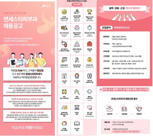 [병원] [신촌] 연세스타피부과 피부관리사 채용 [일반사원 및 아르바이트 채용]