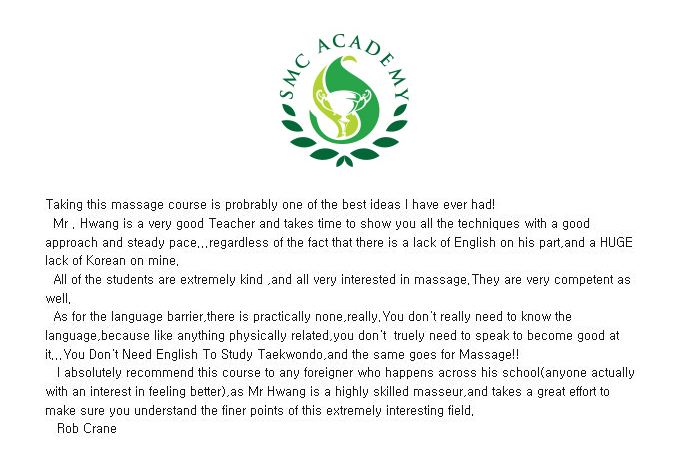 모든 수강생들은 매우 친절하고 모두들 마사지에 매우 흥미를 느끼고 있답니다.