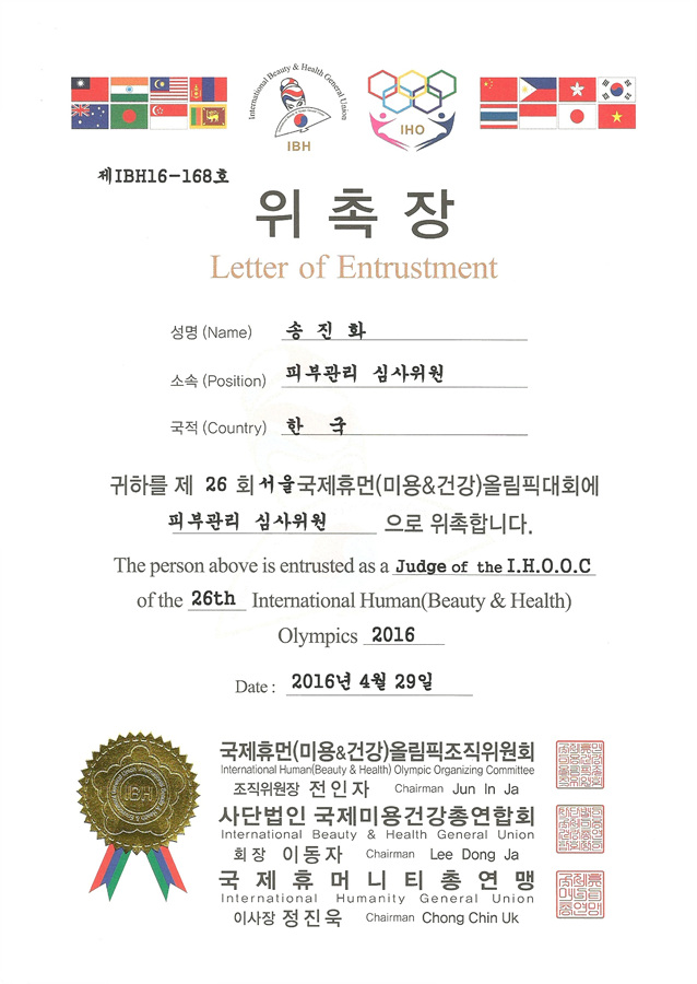 서울 국제휴먼(미용&건강)올림픽대회 피부관리 심사위원 송진화 선생님