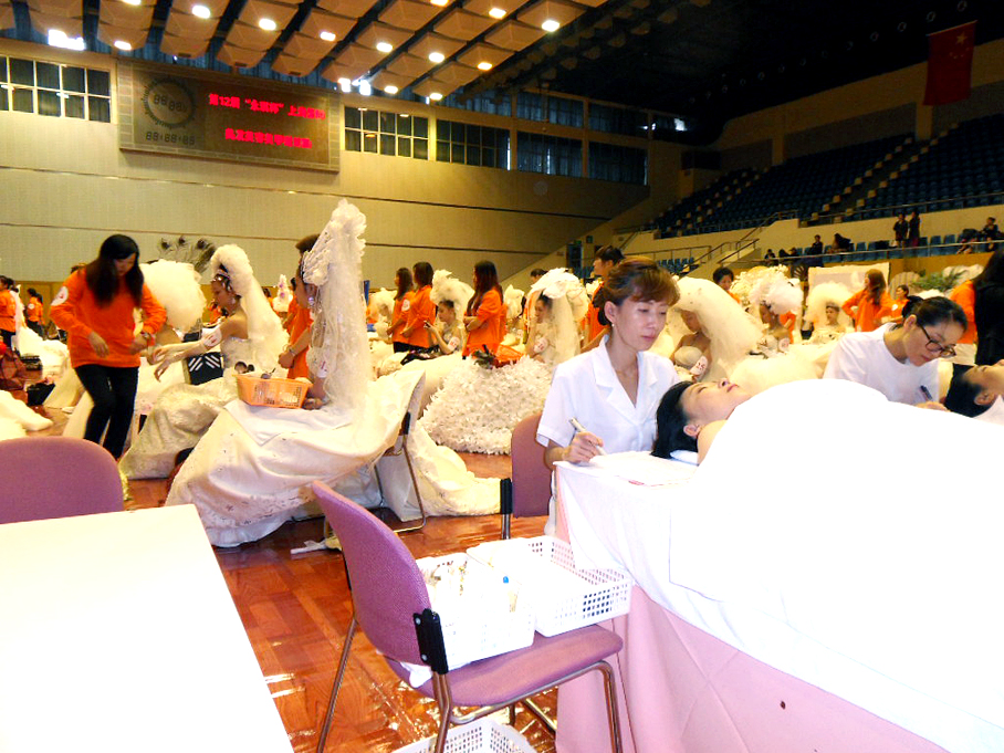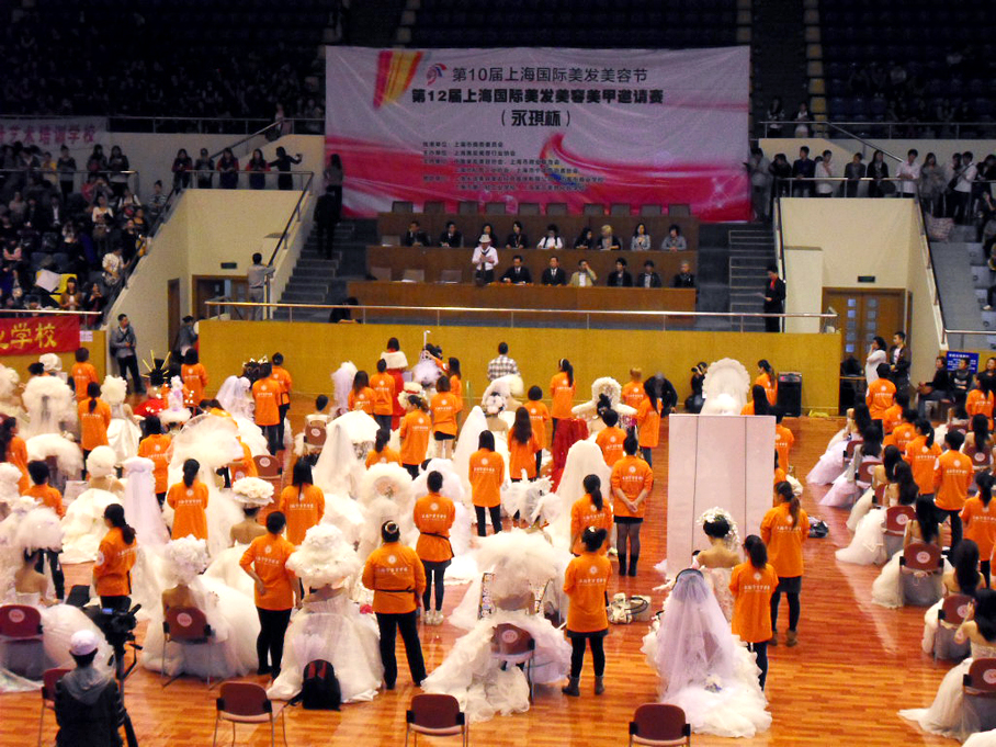 상하이 국제미용경연대회 경기 출전선수들과 대회장 모습