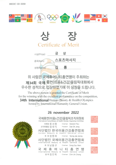 제34회 국제휴먼올림픽대회[김룡 님]-스포츠마사지