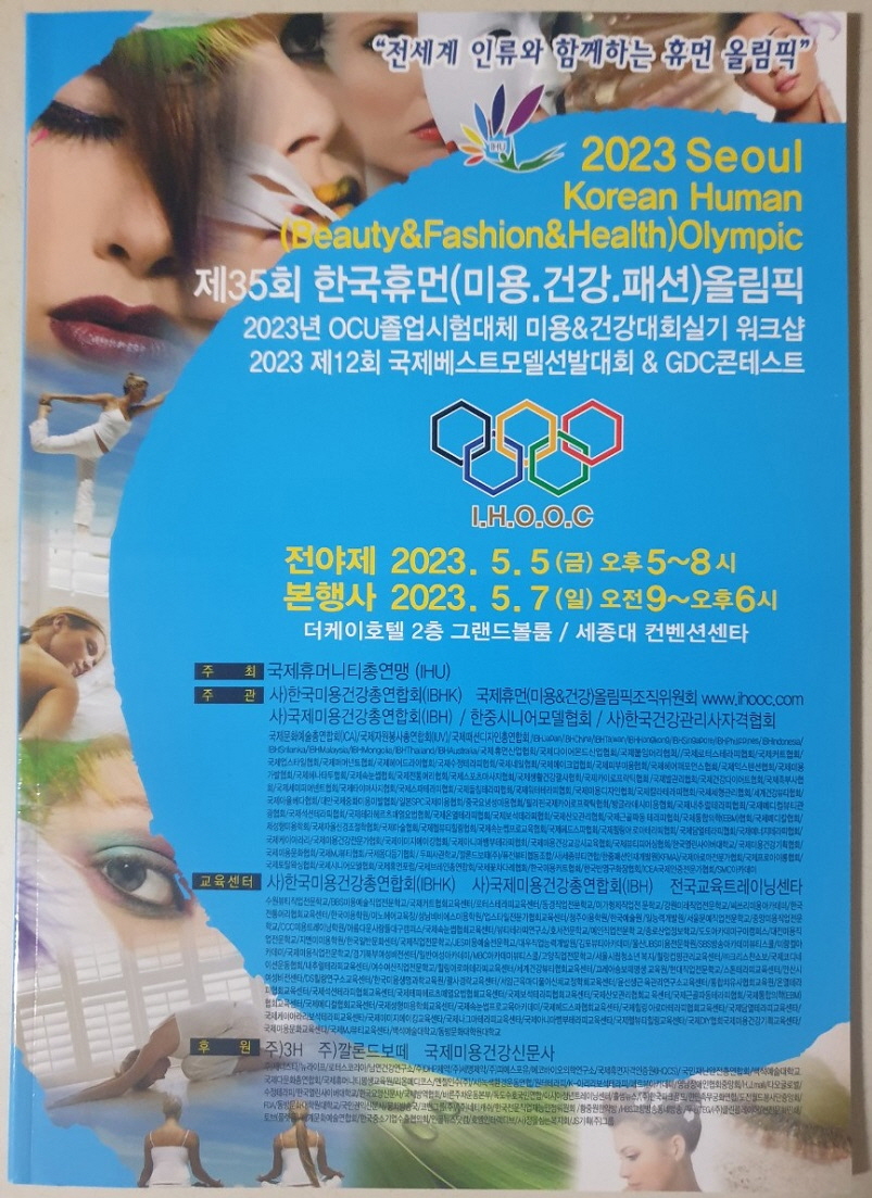 " 2023 Seoul Korean Human (Beauty&Fashion&Health) Olympic 제35회 한국휴먼(미용. 건강. 패션)올림픽이 전세계 인류와 함께하는 휴먼 올림픽이라는 캐치프레이드로 2023. 5.7 (일) 오전 9~오후 6시 세종대 컨벤션센타 교육센터에서 개최되었는데요. 사)한국건강관리사자격협회도 휴먼올림픽 주관사로 참여하였습니다. ![]() ![]()