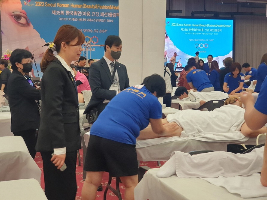 스포츠마사지. 얼굴 피부관리. 림프등관리. 타이마사지. 아로마경락, 반영구화장, 속눈썹, 헤어, 메이크업, 일러스트레이션, 필라테스까지 여러종목에서 많은 선수들이 열띤 경합에 참여하여 성황리에 마쳤습니다.