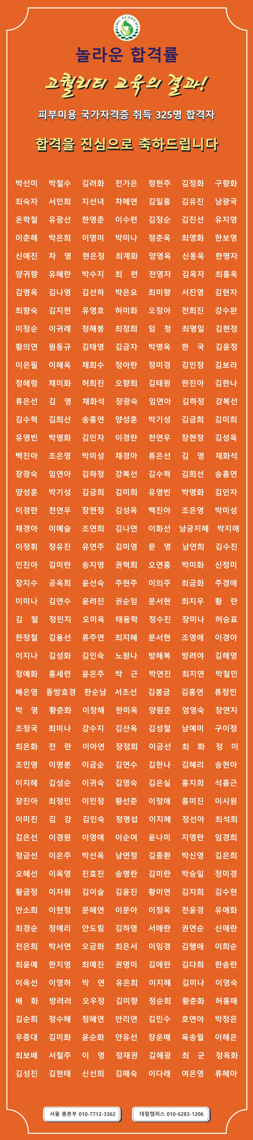 SMC아카데미 피부미용 국가자격증 취득 325명 합격자 명단
