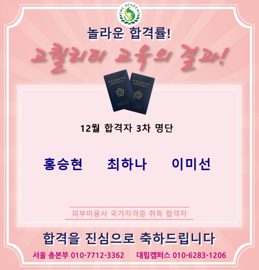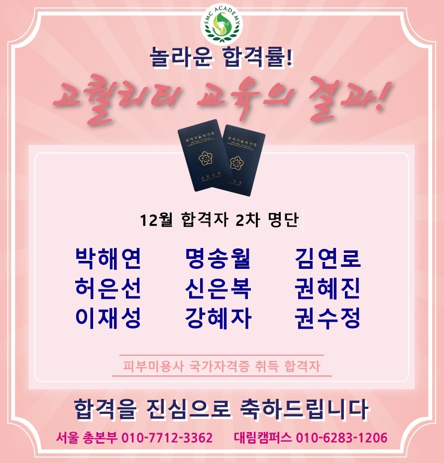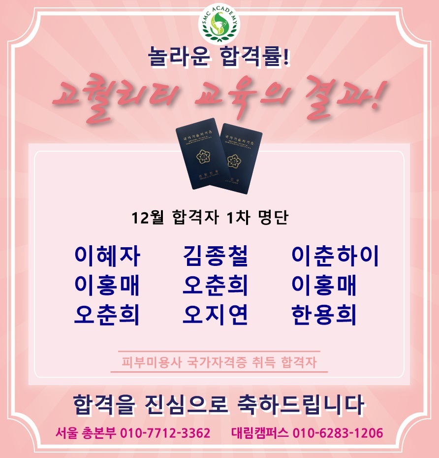 12월 피부미용 국가자격증 취득 합격자 명단 [놀라운 합격률!!]