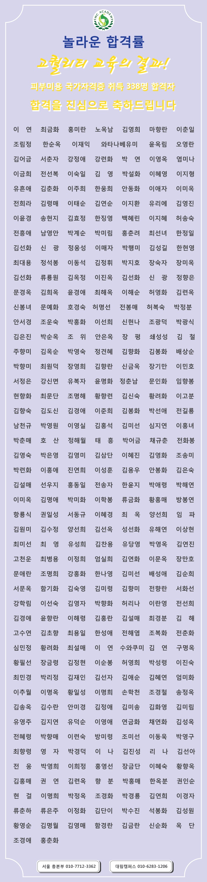 SMC아카데미 피부미용 국가자격증 취득 338명 합격자 명단
