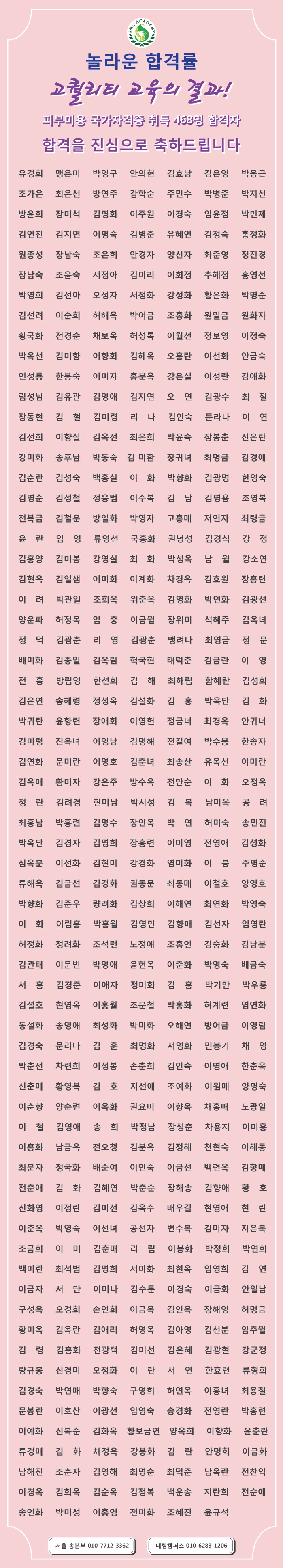 SMC아카데미 피부미용 국가자격증 취득 468명 합격자 명단