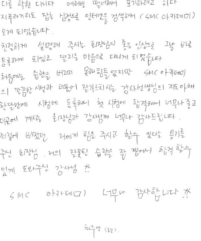 속성 합격!! 1개월만에 국가자격증취득 최주영님!!