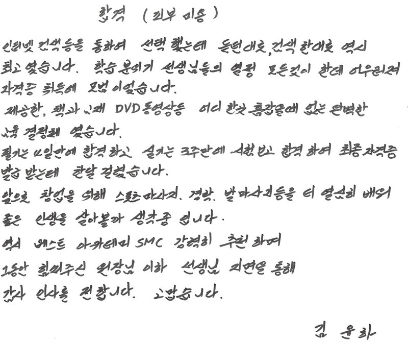 속성 합격!! 1개월만에 국가자격증취득 김윤하님!! [남자분~]