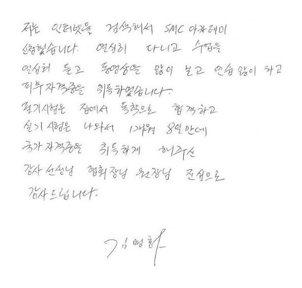 합격!! 1개월 8일만에 국가자격증취득 김명화님!!