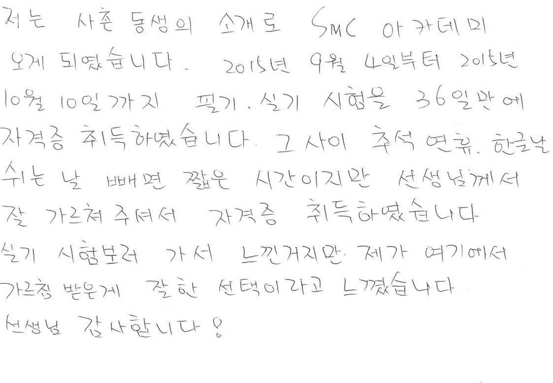 속성 합격!! 1개월 6일만에 국가자격증취득 정홍화님!!
