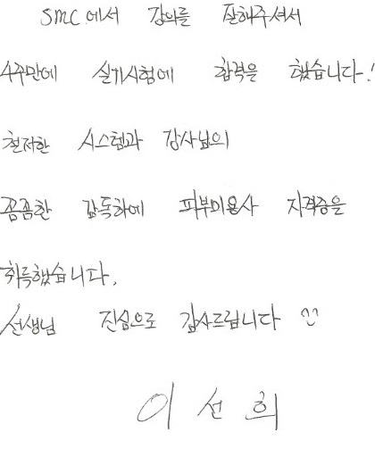 속성 합격!! 1개월만에 국가자격증취득 이선희님!!