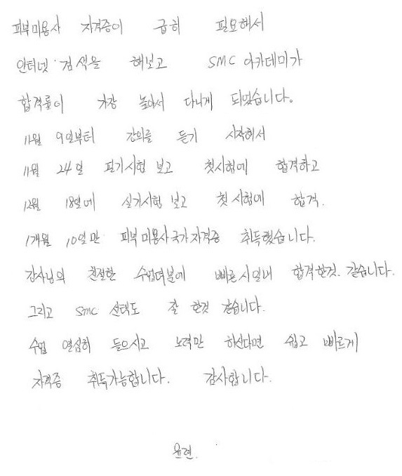합격!! 윤련님 1개월 10일만에 국가자격증취득!!