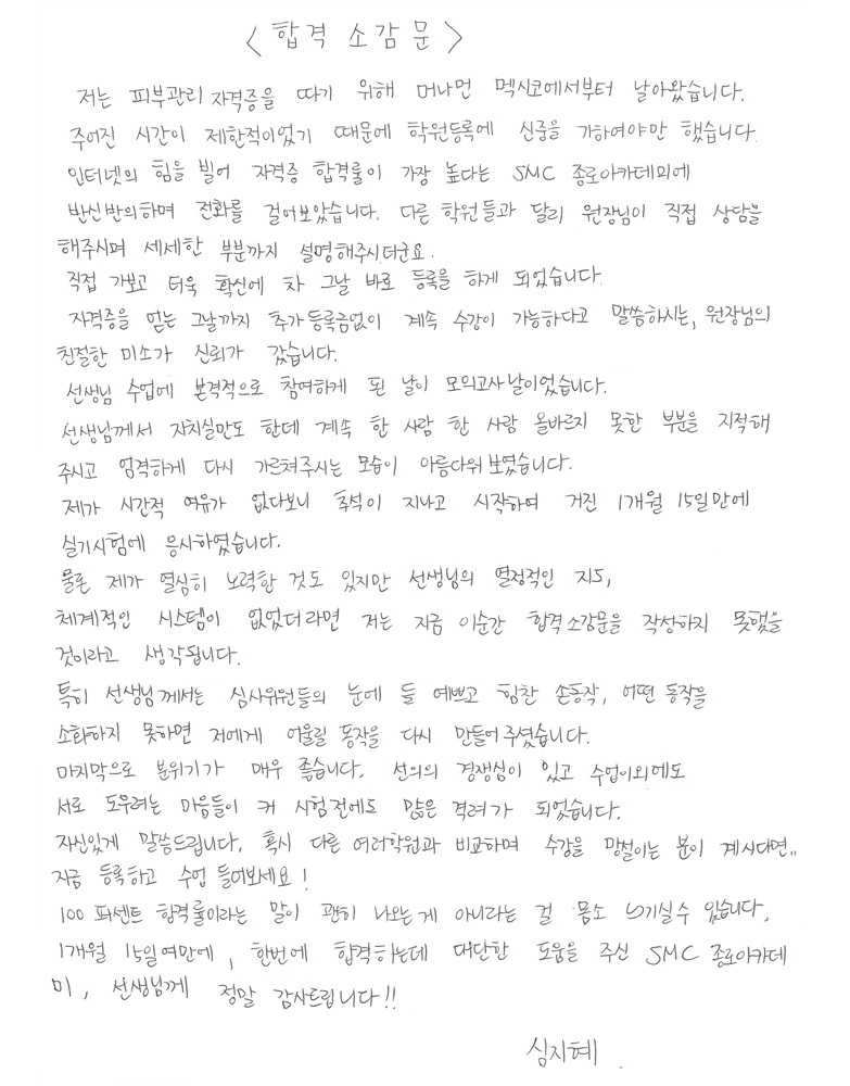 1개월 15일여만에, 한번에 합격하는데 대단한 도움을 주신 SMC