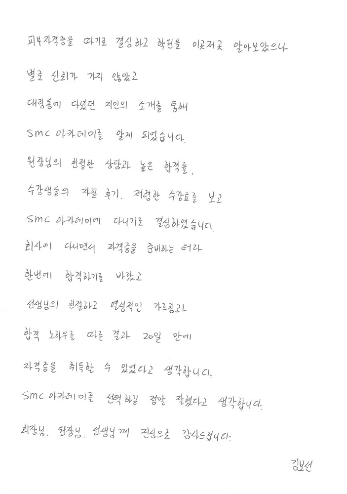 속성합격! 한번에 국가자격증 취득, 김보선님!