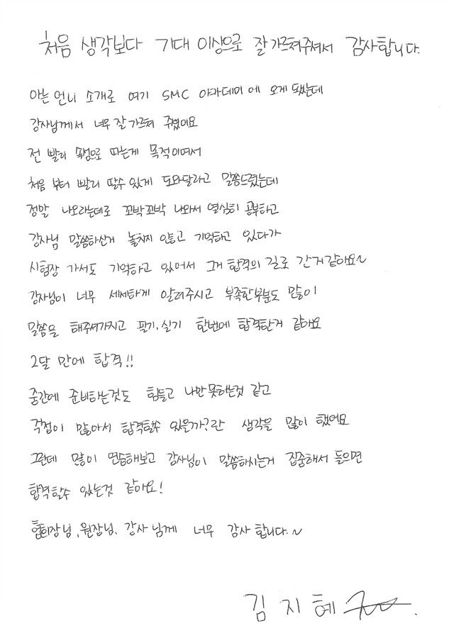 속성 합격!! 2달만에 국가자격증취득 김지혜님!!