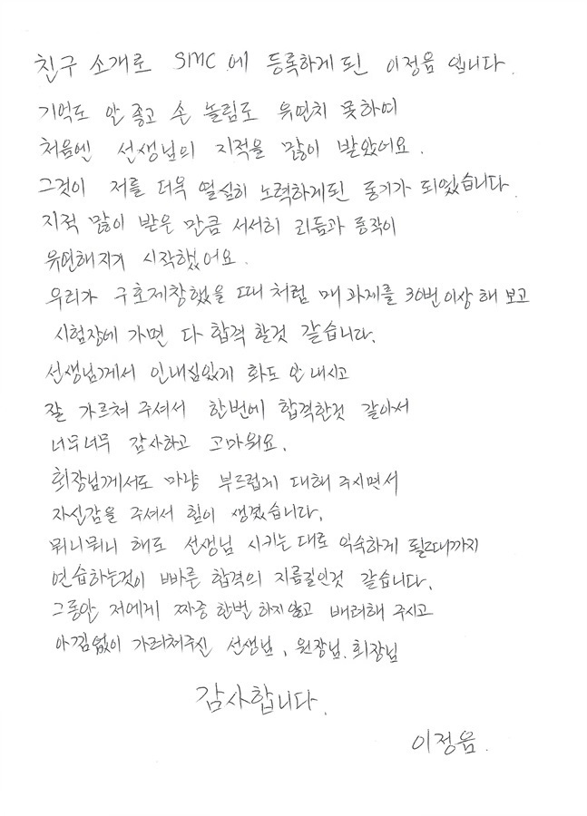 속성 합격!! 한번에 국가자격증취득 이정음님!!
