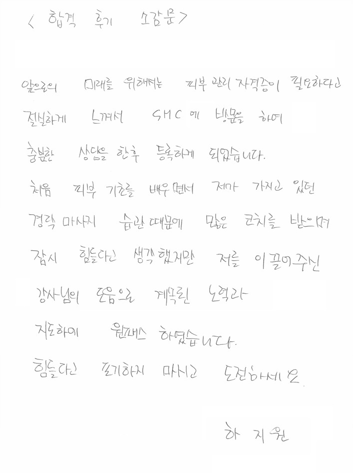 속성합격! 한번에 국가자격증취득, 하지원님!
