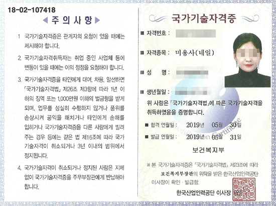 속성 합격!! 실기시험 한번에 네일자격증취득 김선아님!!