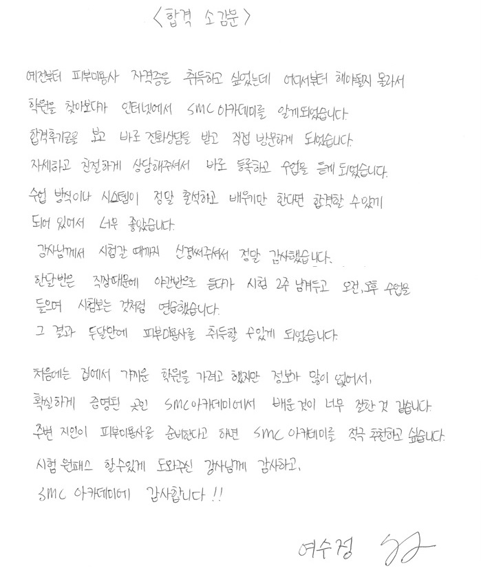 속성합격! 한번에 국가자격증 취득, 여수정님!