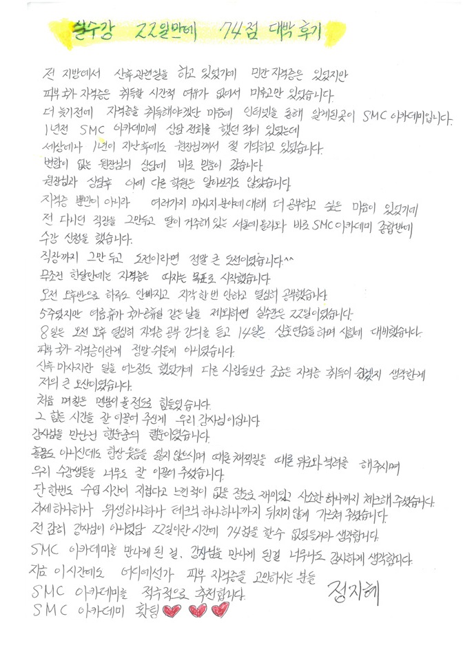 속성합격! 22일만에 국가자격증 취득, 정지혜님!