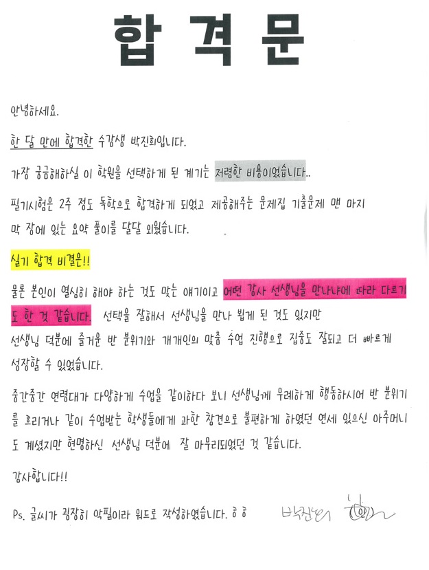 합격! 한달만에 국가자격증취득, 박진희님!