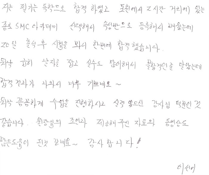 속성 합격!! 한번에 국가자격증취득 이선미님!!