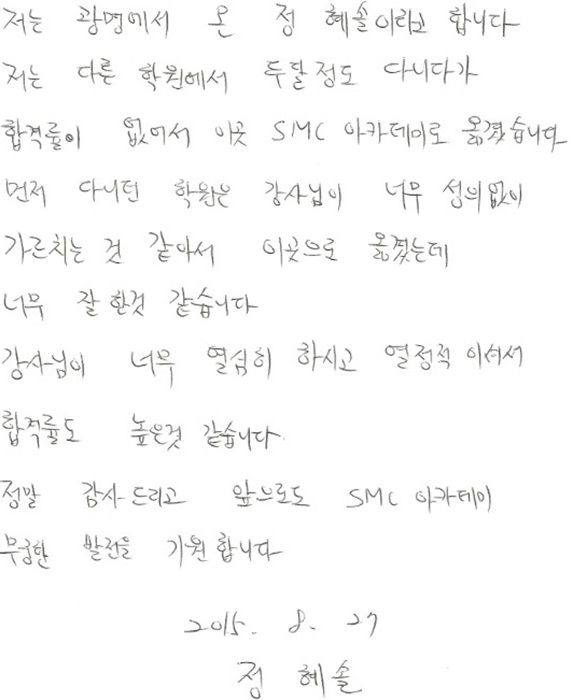 합격!! 국가자격증취득 정혜솔님!! ★★★★★ [광명 다른학원 다니다 오신분~]