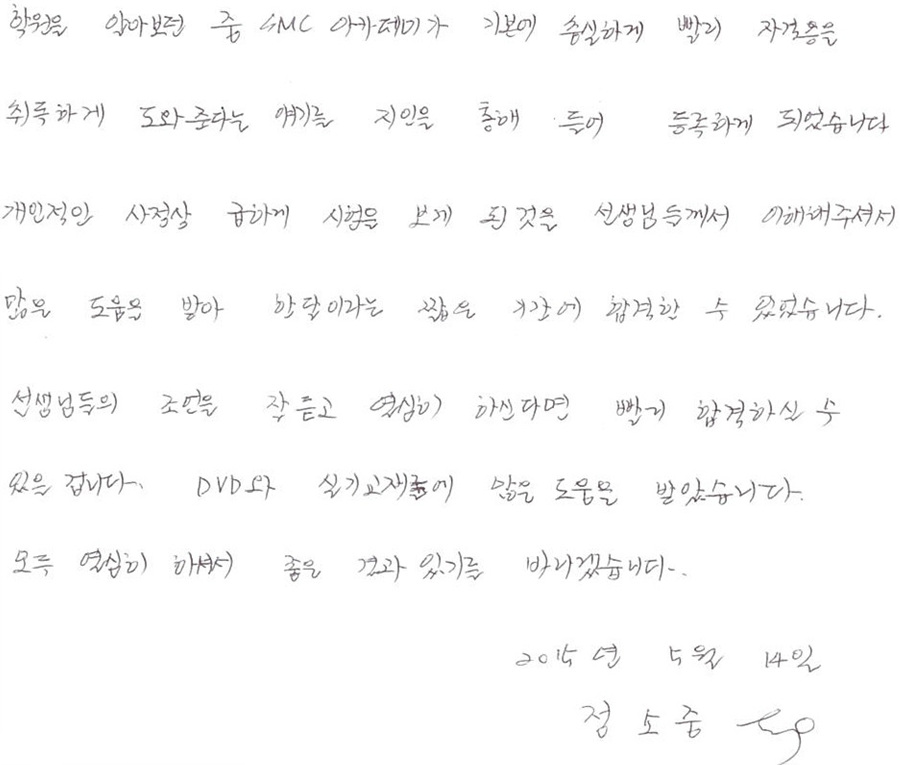 속성 합격!! 1개월만에 국가자격증취득 정소중님!! [지인소개로 오신분~]
