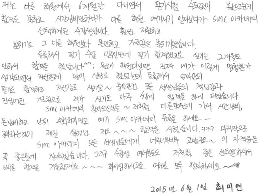 속성 합격!! 2개월만에 국가자격증취득 최미연님!! ★★★★★ [다른학원다니다 오신분~]