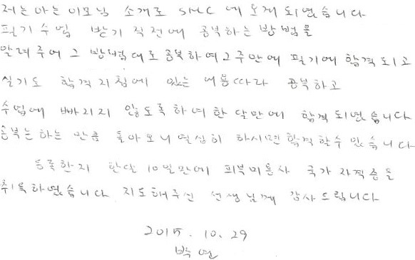 | 속성 합격!! 1개월 14일만에 국가자격증취득 박연님!! [이모소개로 오신분~] | |