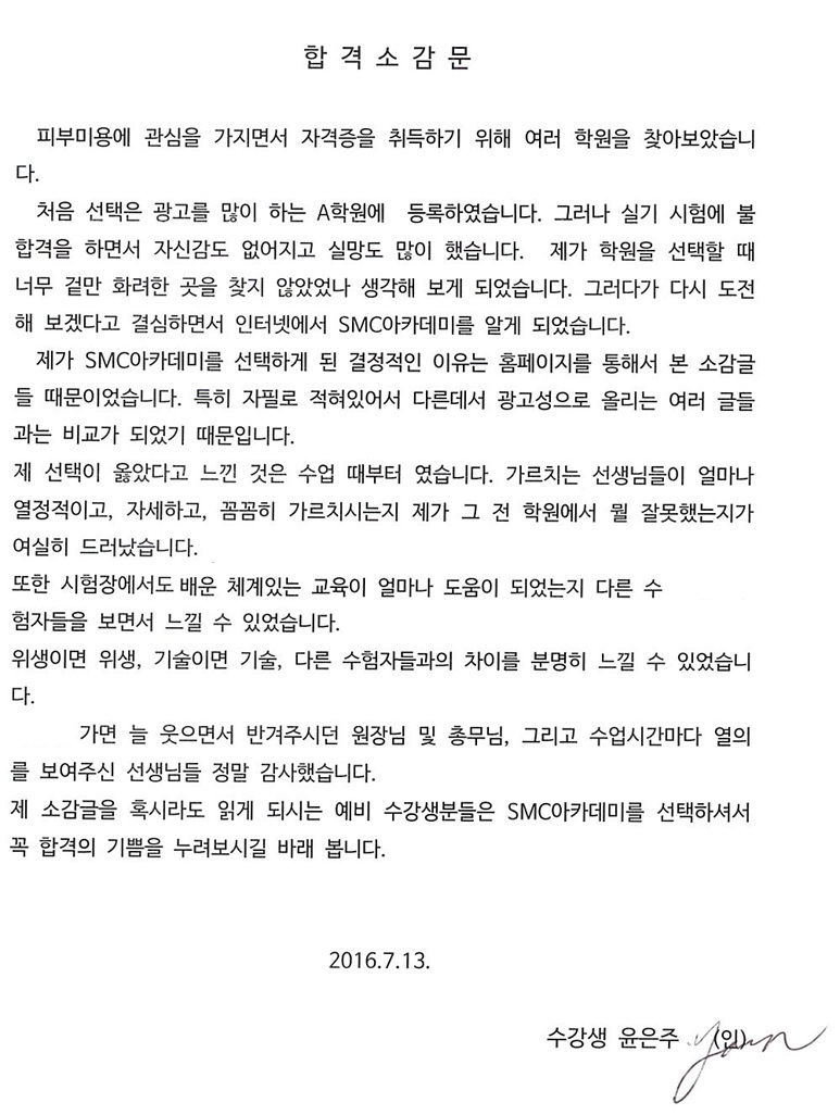 합격!! 국가자격증취득 윤은주님!! ★★★★★ [강남A 다른학원다니다 오신분~]