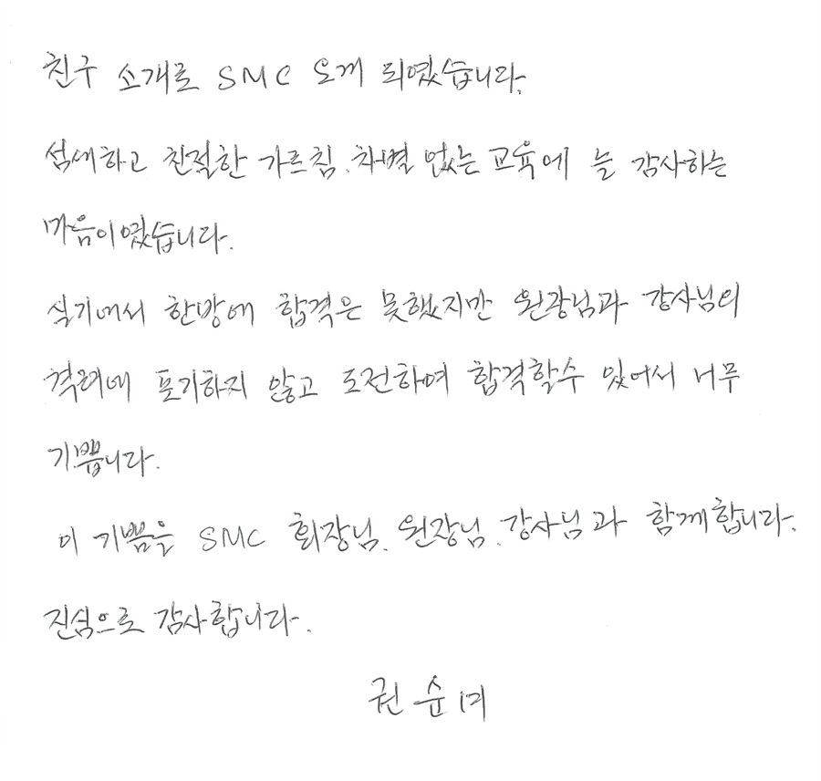 합격!! 국가자격증취득 권순녀님!! [친구소개로 오신분~]