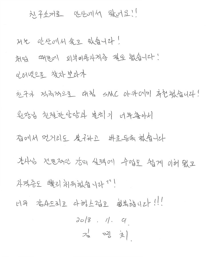 합격!! 국가자격증취득 김명희님!! [친구소개로 오신분~]