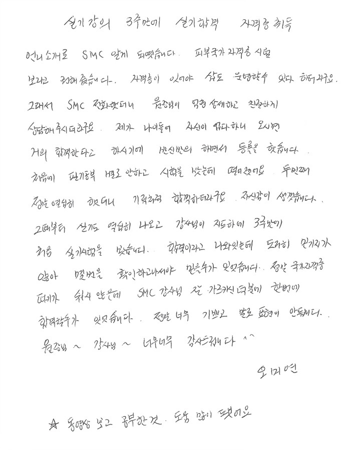 속성 합격!! 실기시험 3주만에 한번에 국가자격증취득 오미연님!! [언니소개로 오신분~]
