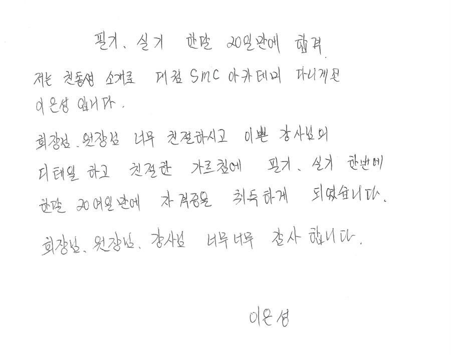 속성 합격!! 1달 20일만에 국가자격증취득 이은성님!! [동생소개로 오신분~]