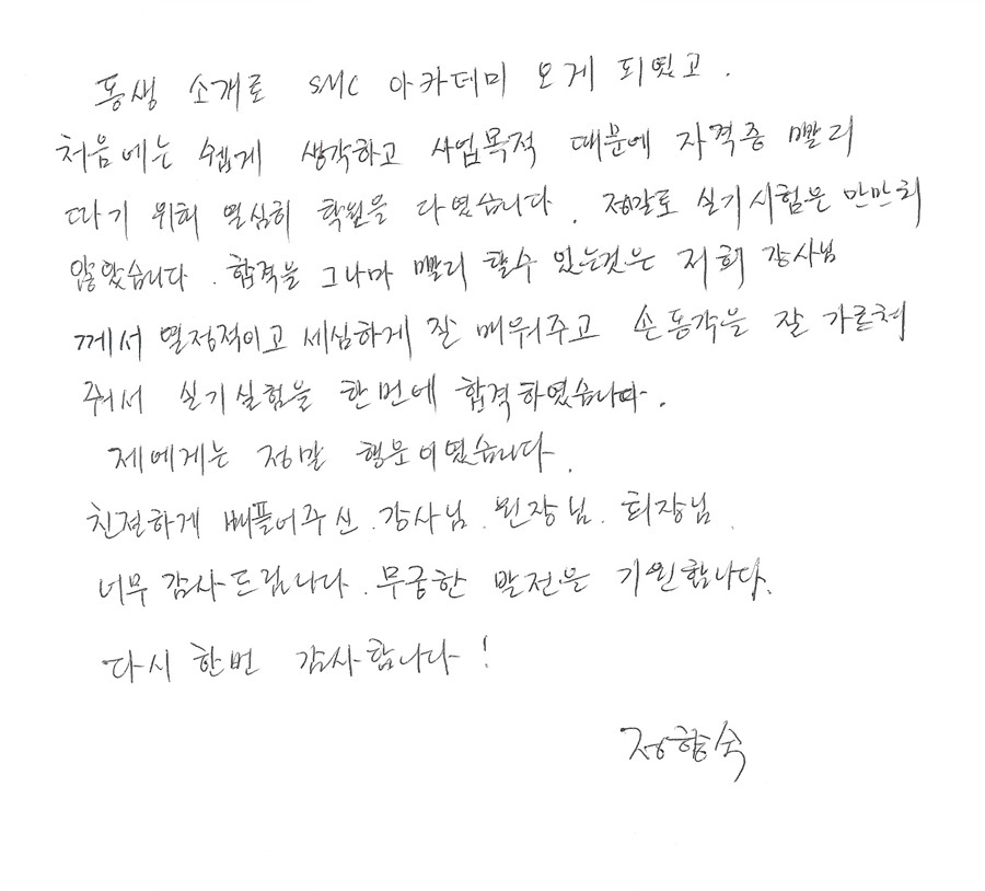 속성 합격!! 실기시험 한번에 국가자격증취득 정향숙님!! [동생소개로 오신분~]