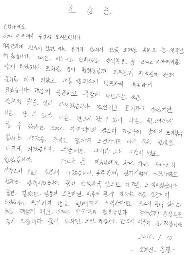 국가자격증 속성!! 오해선님 필기 4주만에 합격!! [주말반~]