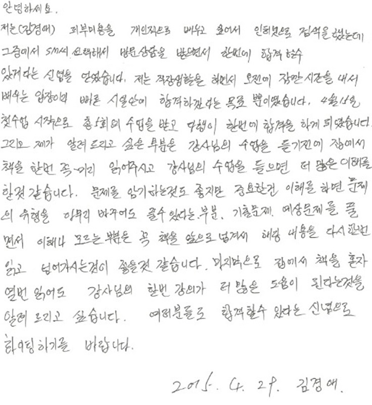 국가자격증 속성!! 김경애님 필기 5일만에 합격!!