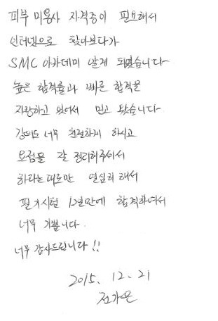 피부미용사 국가자격증 필기시험 속성합격!! 전가은님 필기 12일만에 합격!!