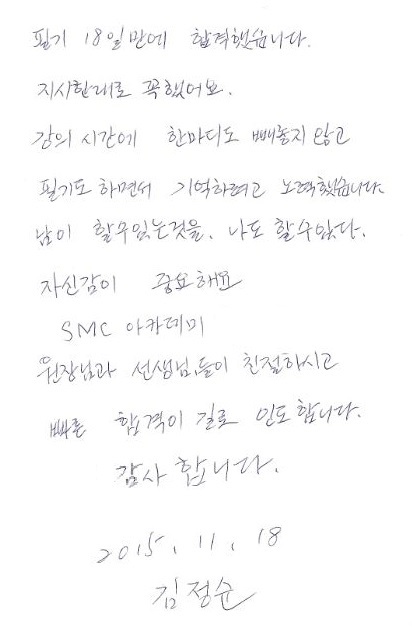 국가자격증 속성!! 김정순님 필기 18일만에 합격!!
