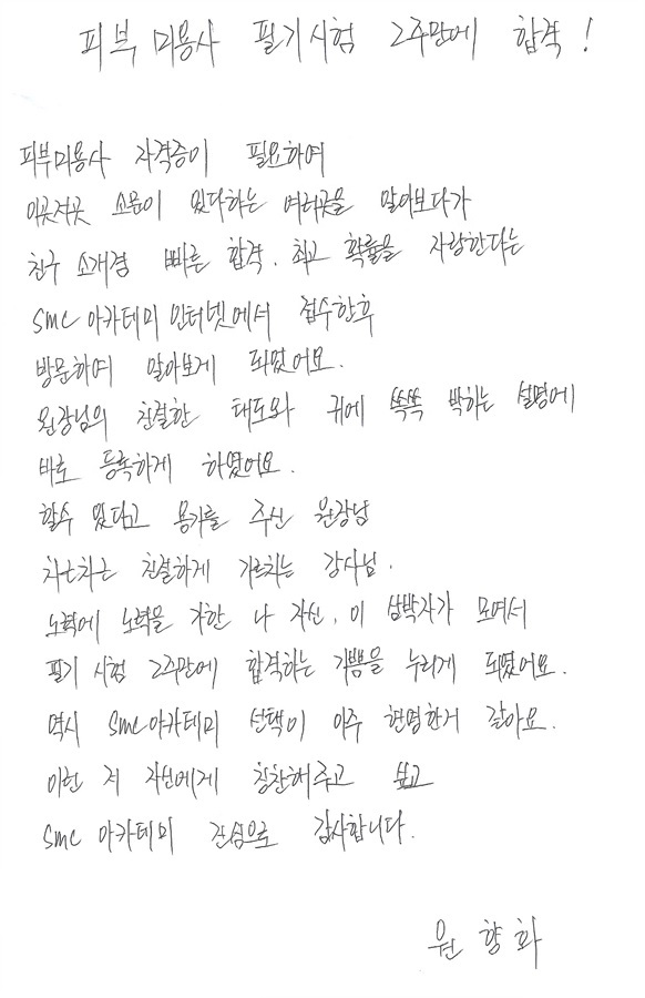 피부미용사 국가자격증 필기시험속성 합격후기!! 원향화님 2주만에 합격!!