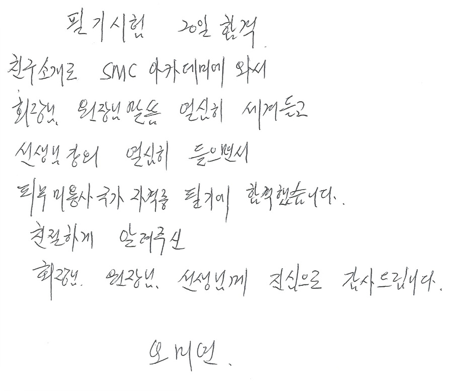피부미용사 국가자격증 필기시험속성 합격후기!! 오미연님 20일만에 합격!!