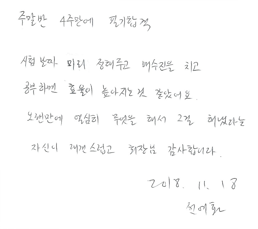 피부미용사 국가자격증 필기시험속성 합격후기!! 전여화님 4주만에 합격!! [주말반~]