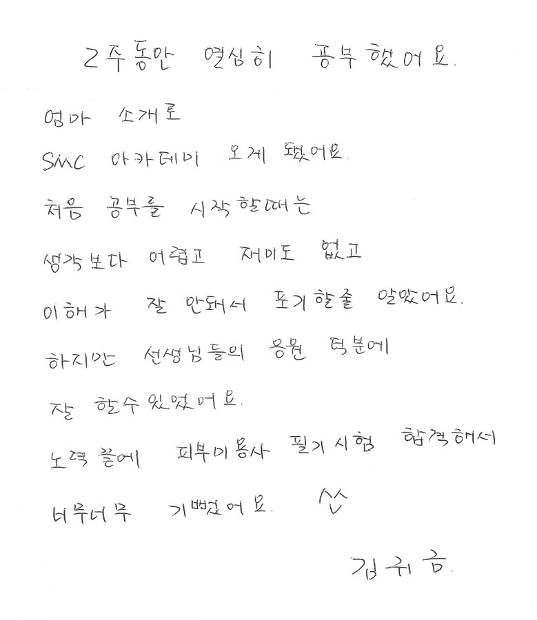 피부미용사 국가자격증 필기시험속성 합격후기!! 김귀금님 2주만에 합격!!