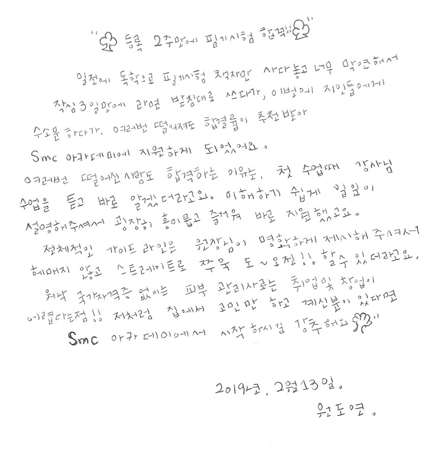 피부미용사 국가자격증 필기시험 속성합격후기!! 원도연님 2주만에 합격!!