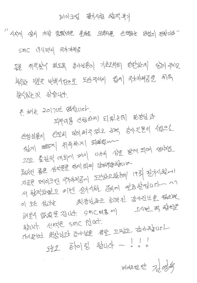 메이크업미용사 국가자격증 필기시험 합격후기!! 김영숙님 한번에 합격!!