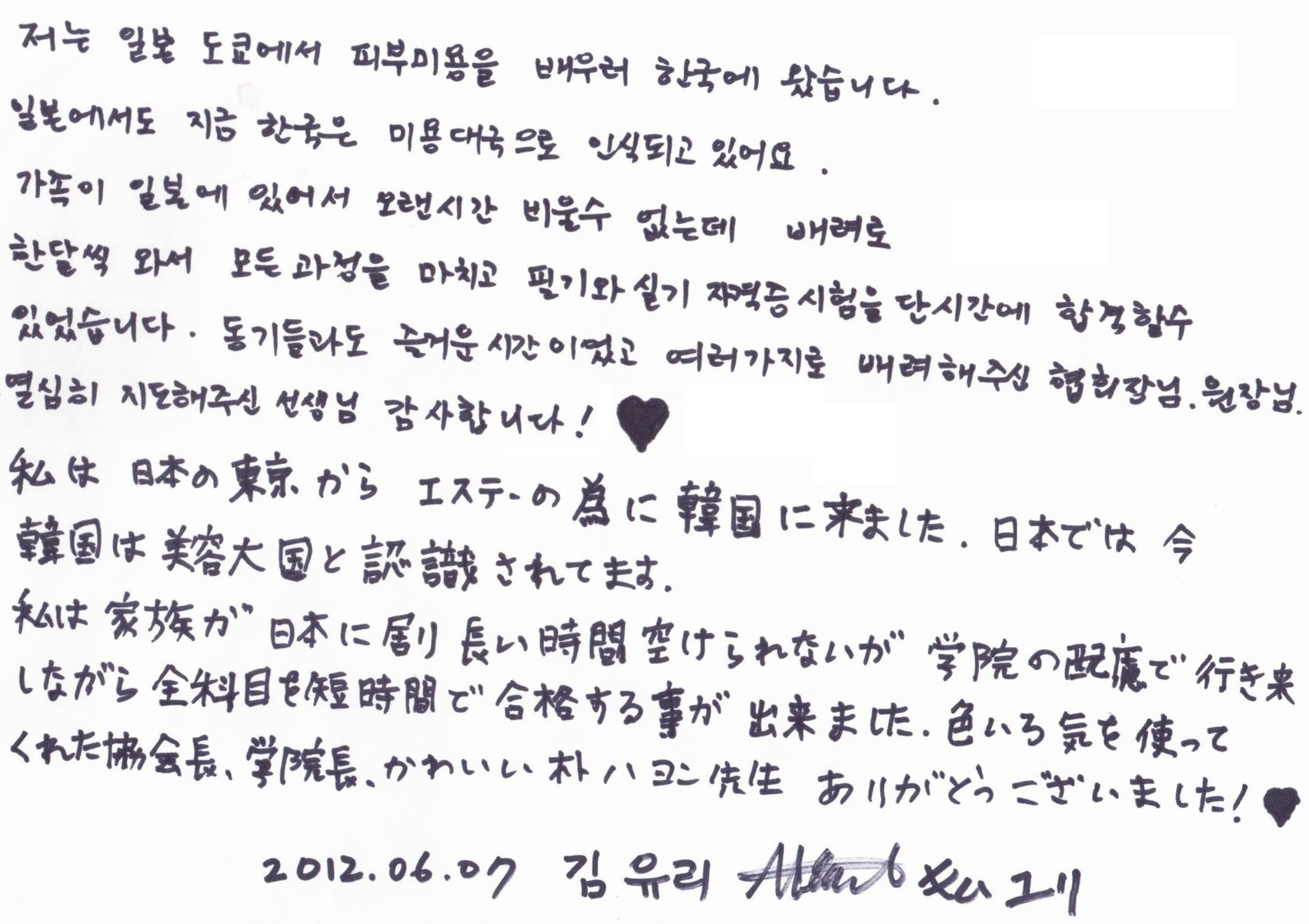 日本から来た제일교포 김유리님 합격!! 국가자격증취득 [일본 도쿄에서 사업하기 위해 오신분~]