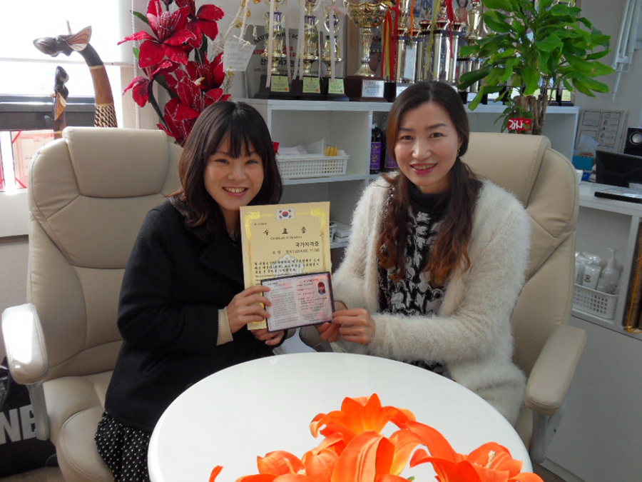 日本から来た 와타나베 유미 !! 사업하기위해[일본에서 오신분~] 합격!! 피부국가자격증취득